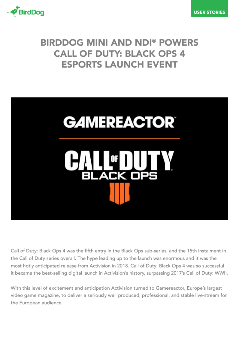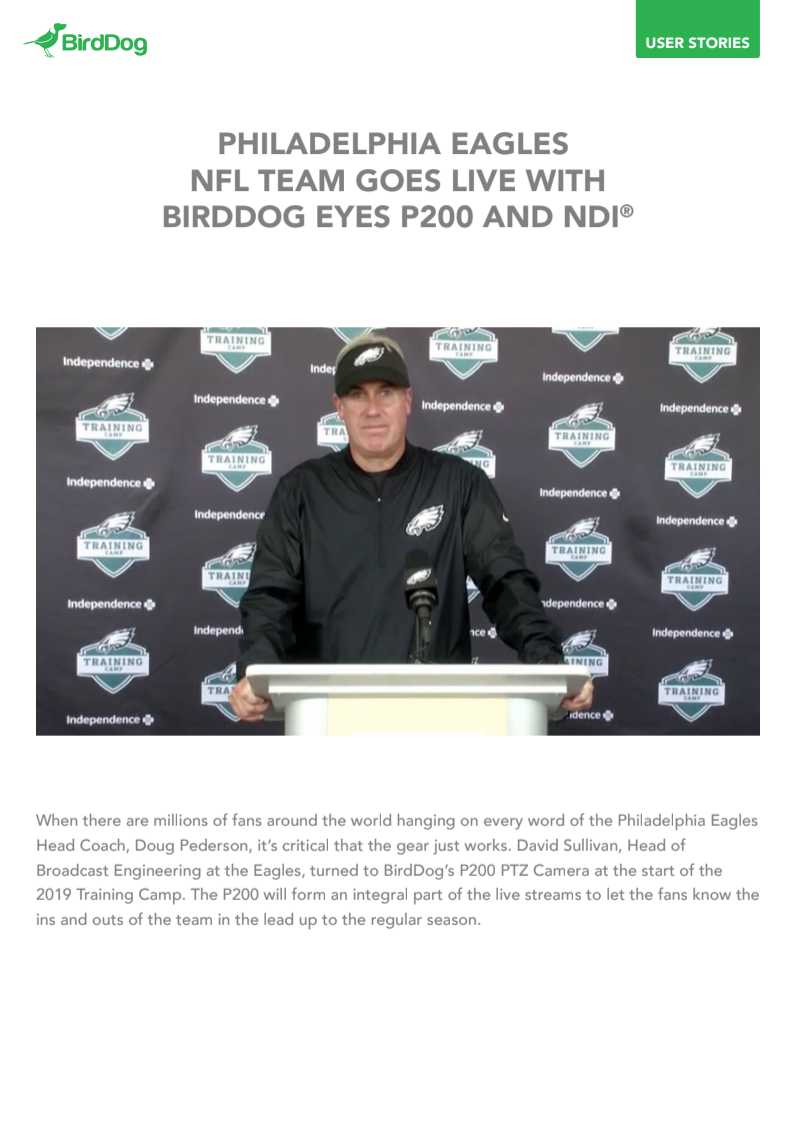 BirdDog Australia Pty Ltd (BirdDog) was founded in 2016 with a mission to create the world’s best video over IP products and workflows. BirdDog developed embedded NDI® hardware and implemented into a range of high definition and 4K broadcast video converters, robotic pan-tilt-zoom cameras, and a suite of software products to tie end to end workflows together. BirdDog products are available globally through a network of distributors and resellers and used by some of the biggest names in Broadcast, AV, House of Worship, Live Streaming, Esports, and Education. BirdDog’s headquarters are in Melbourne, Australia with in-country presence in USA and UK.