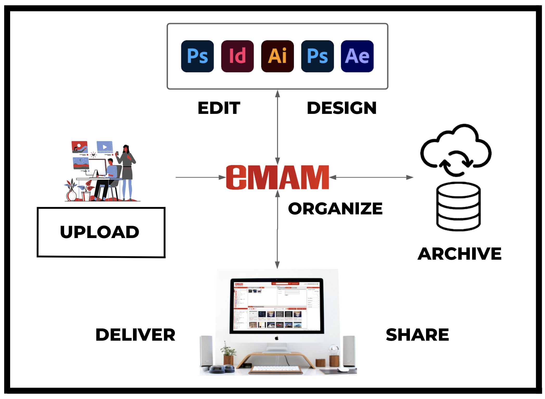 eMAM is a powerful media asset management platform that provides users an intuitive web interface to collaboratively produce, share, and deliver video and other media. With built-in tools and over 90+ technology partners, eMAM manages native resolution files and integrated workflow processes needed by leading organizations worldwide since 2006 in local, cloud, and hybrid environments. eMAM helps organizations respond to emerging demands with scalability, easy reconfiguration, and multiple ordering options: by purchase, by subscription, or by turnkey cloud SaaS and VM/PaaS.