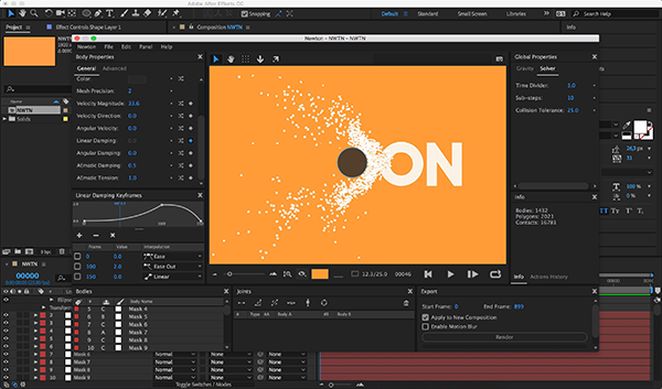 Newton 3 brings realistic physics to Adobe After Effects CC, making your 2D composition layers act like solid objects that interact with each other – just like in the real world.