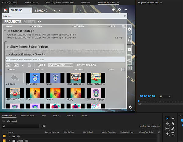 STRAWBERRY provides scrubbable proxy previews of all the content that can be viewed from the panel extension into Adobe Premiere Pro CC and Adobe After Effects CC. The panel allows editors or VFX artists to stay within their applications, importing high-res files with the click of a button and browsing through content on the shared storage.