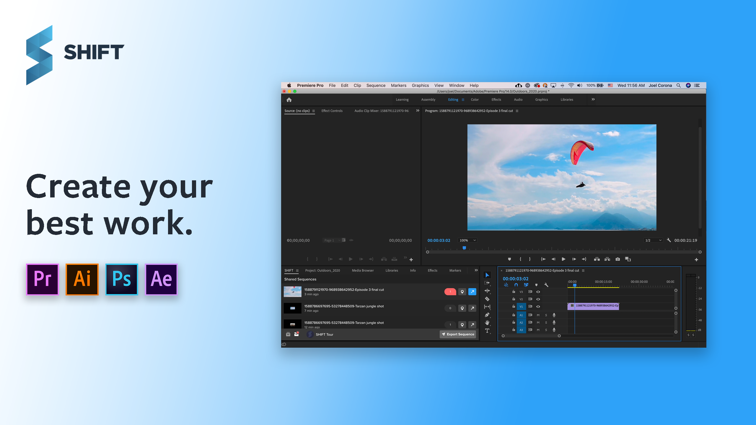 Import assets into Premiere Pro and After Effects from your SHIFT Projects. Export your sequence or composition as a private or public link with expiration dates and custom passwords. Pull in comments from your recipients that sync directly to your timeline and iterate on feedback with auto-updating versions.