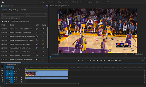 WSC’s panel is implemented within Premiere Pro to provide users with WSC’s content automation abilities within Premiere for streamlined sports content creation and distribution workflows.